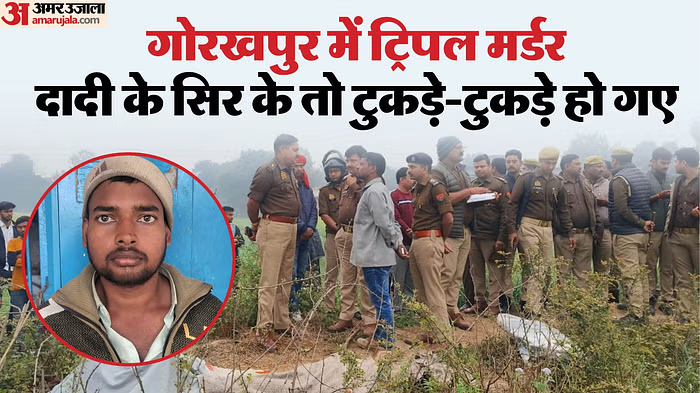 गोरखपुर के झंगहा इलाके में शुक्रवार की भोर में मानसिक रूप से विक्षिप्त एक युवक ने भैंस को मारने से मना करने पर अपने दादा उनके भाई और दादी को कुल्हाड़ी और फावड़े से काट डाला। दादी के तो सिर के ही टुकड़े हो गए। सूचना पर पहुंची पुलिस ने आरोपी को कुल्हाड़ी और फावड़े के साथ गिरफ्तार कर लिया। किसी तरह जान बचाकर भागी आरोपी की मां की तहरीर पर पुलिस ने हत्या का केस दर्ज किया है।